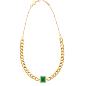 Curb Chain Choker with Emerald and Diamond Pendant