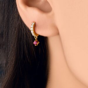 Diamond Hoop Piercing with Dangling Ruby – One Piece