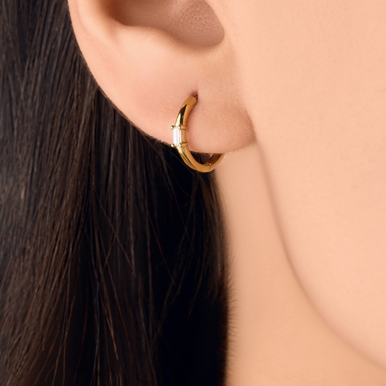 18K Yellow gold hoop with one diamond in baguette cut (one piece)