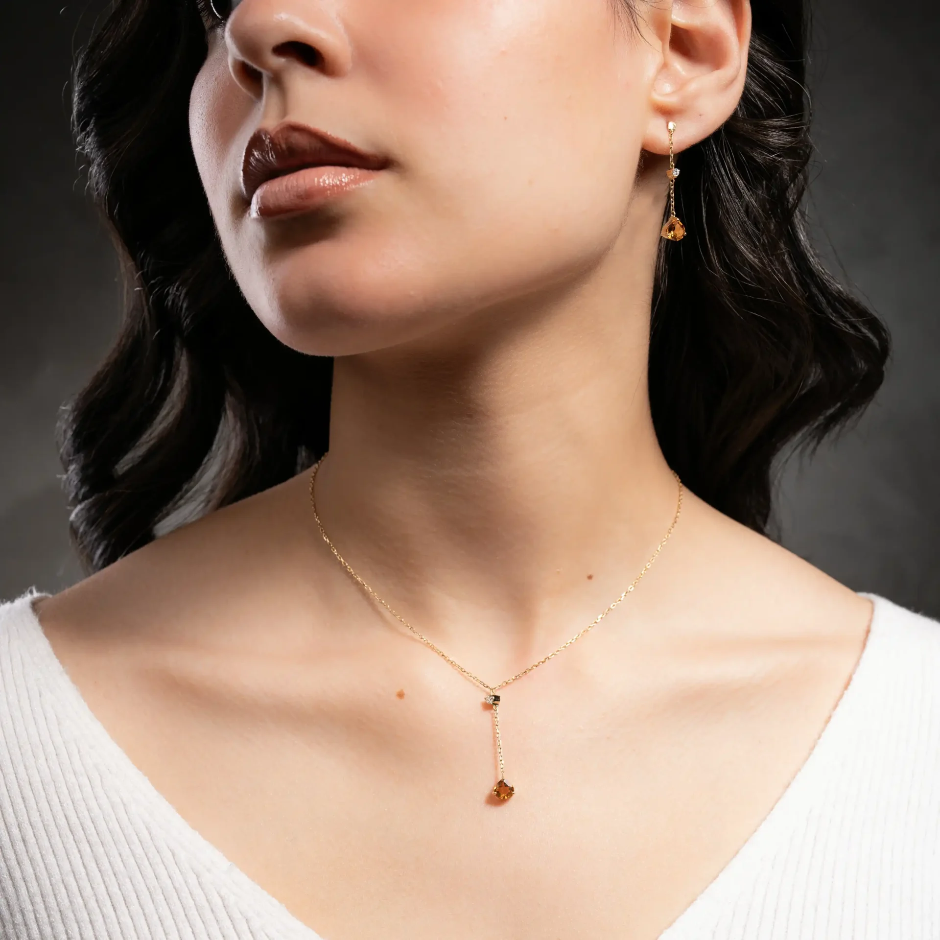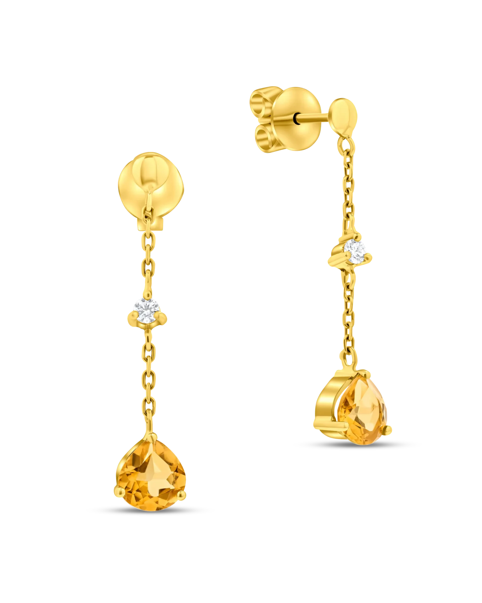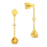 18K Yellow gold chain earrings of round diamonds and yellow citrine gemstones