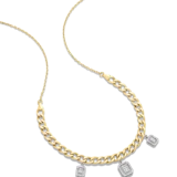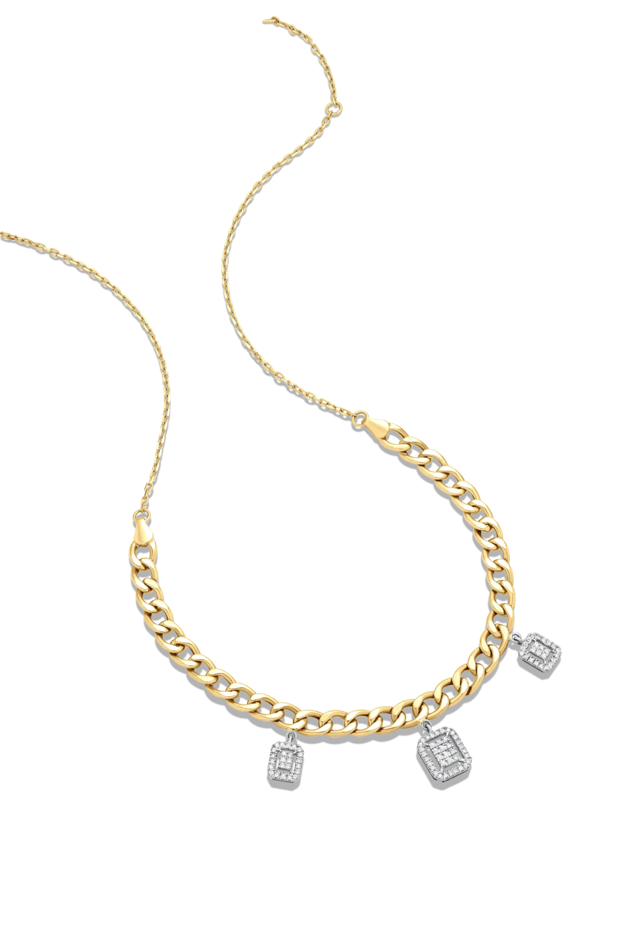 18K Yellow/White gold curb chain choker with three diamond baguette shaped pendants