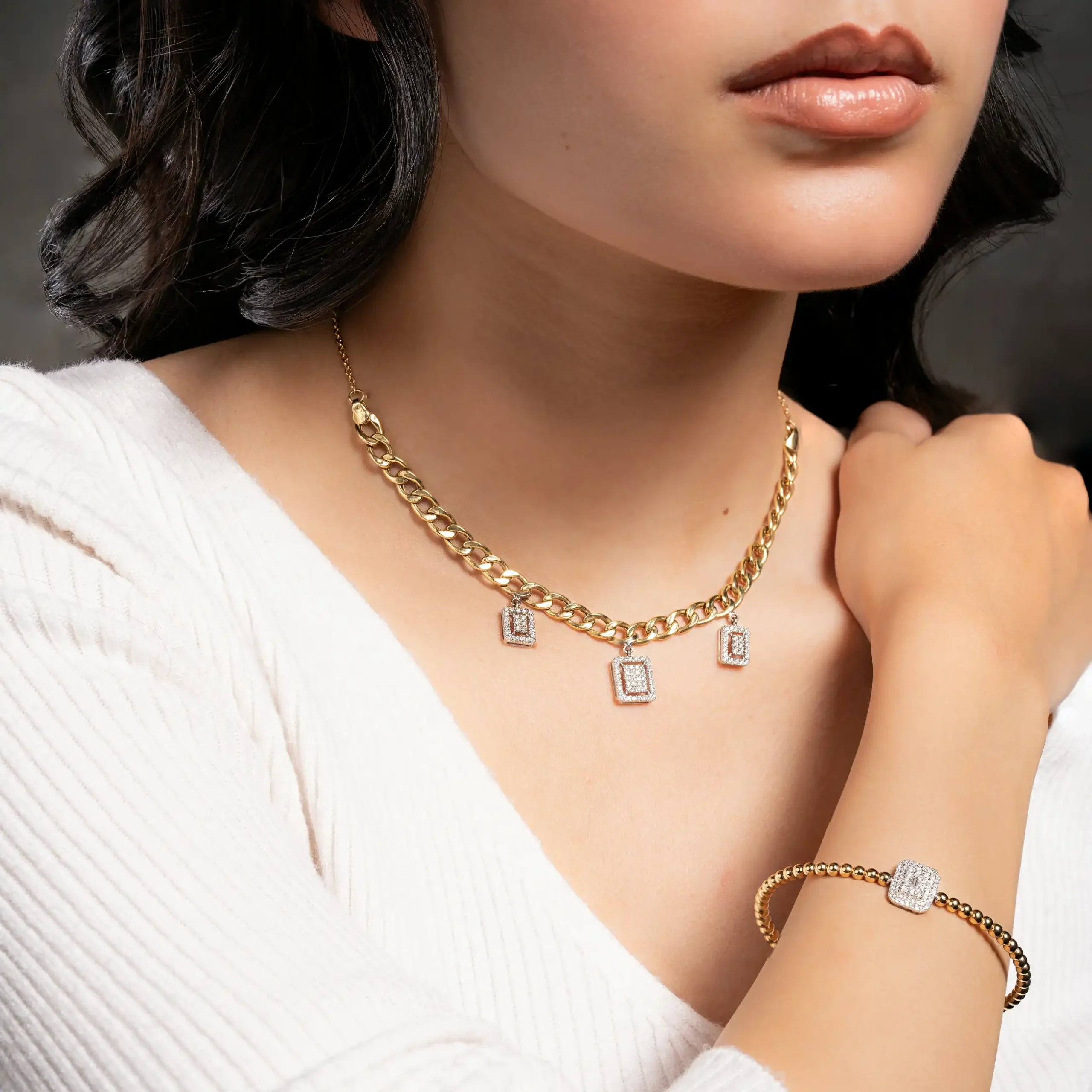 Curb Chain Choker with Diamond Baguette Pendants