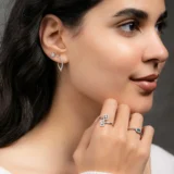 18K White gold diamond earrings with curved front and back sides