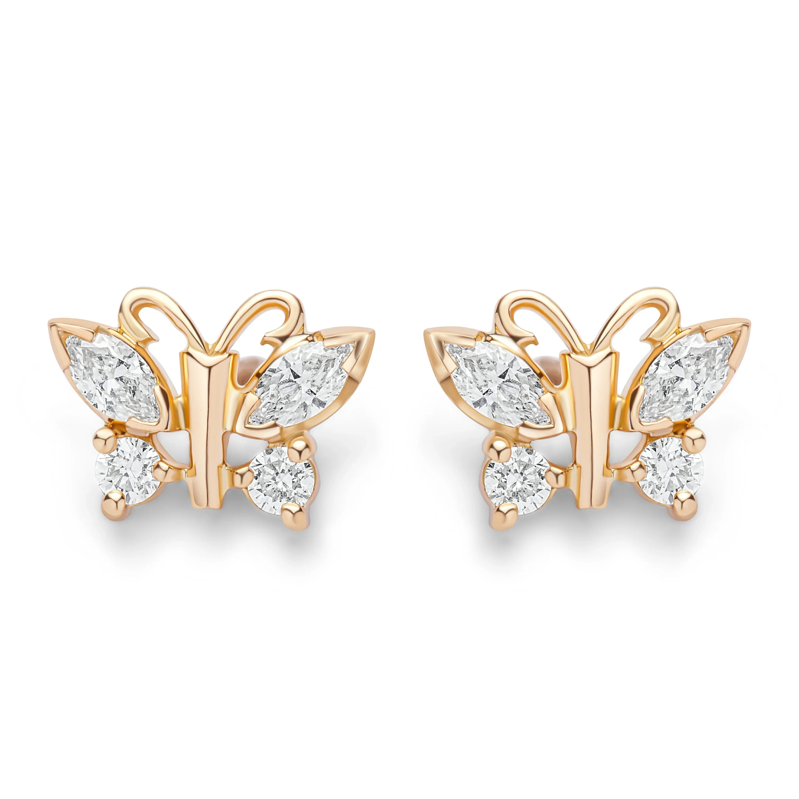 18K Yellow gold butterfly stud earrings with marquise and round diamonds