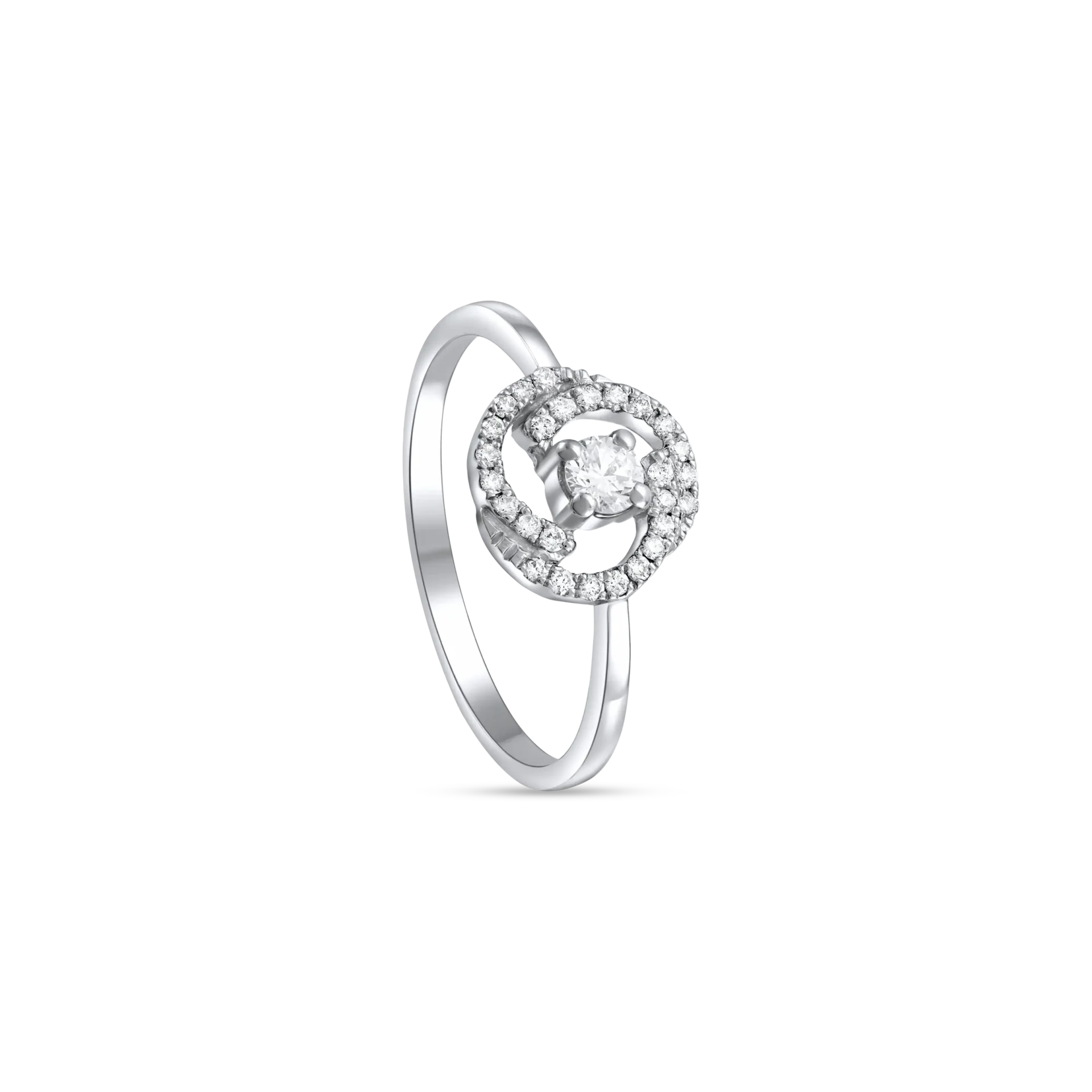 18K White gold ring with diamond round central stone surrounded by diamond curves