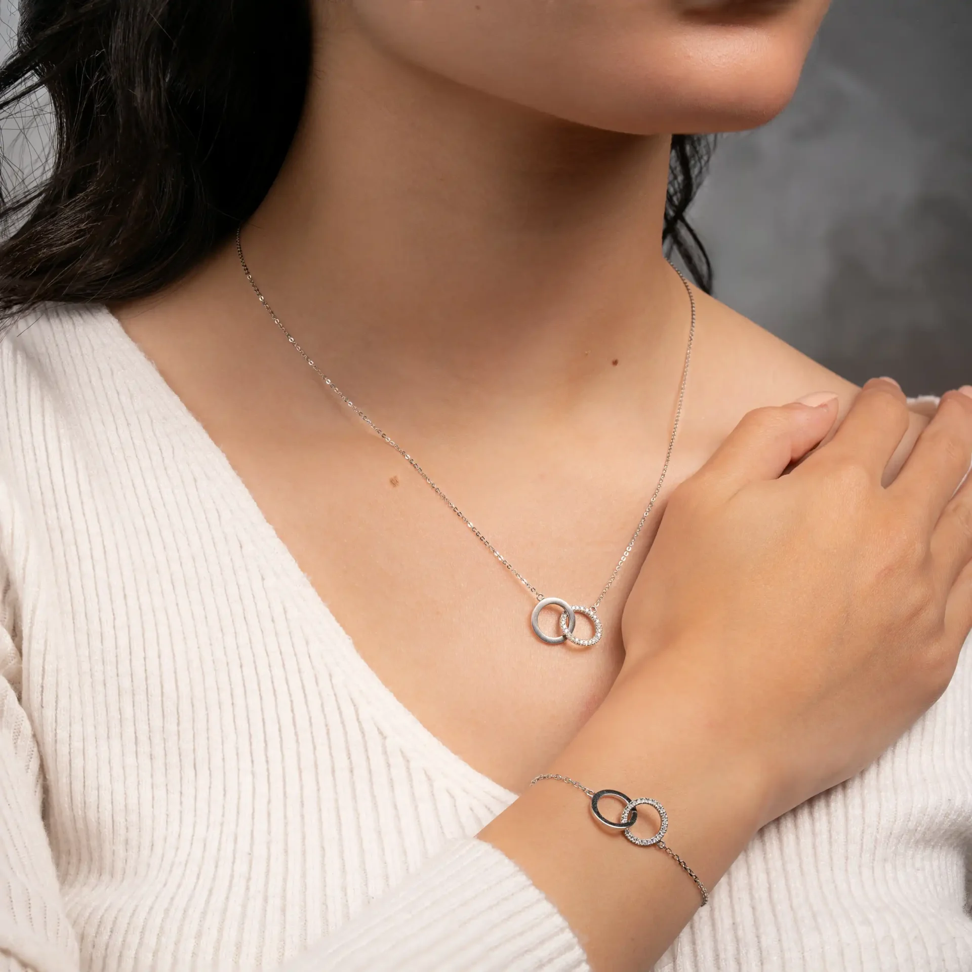 18K White gold bracelet of two gold and diamond circles