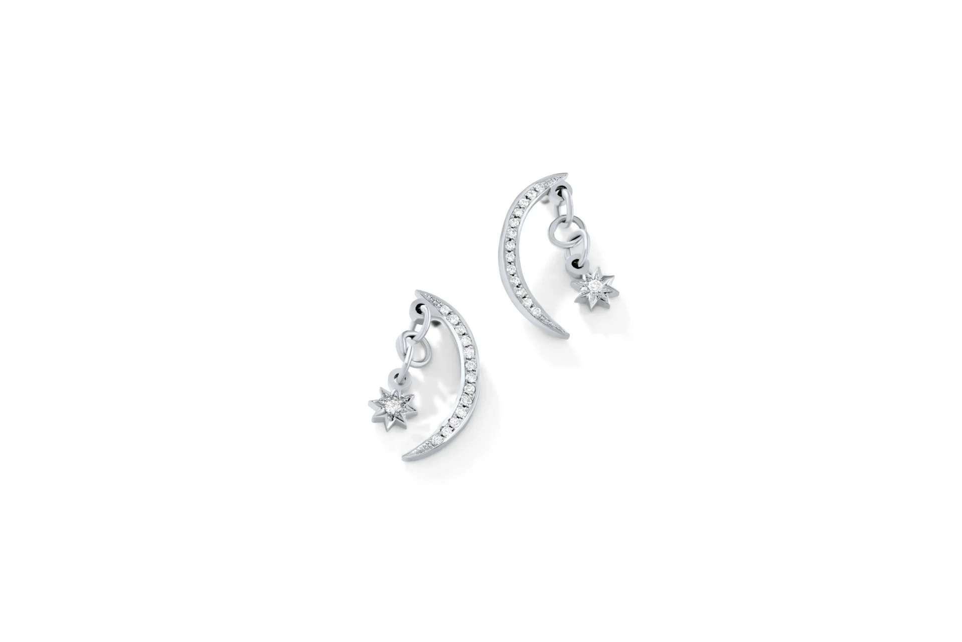 18K White gold earrings with diamond crescent and stars