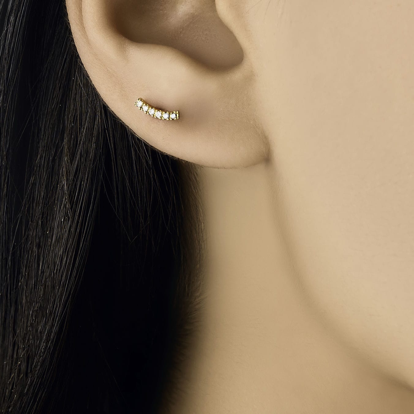 18K Yellow gold flat back piercing with diamond curve (one piece)