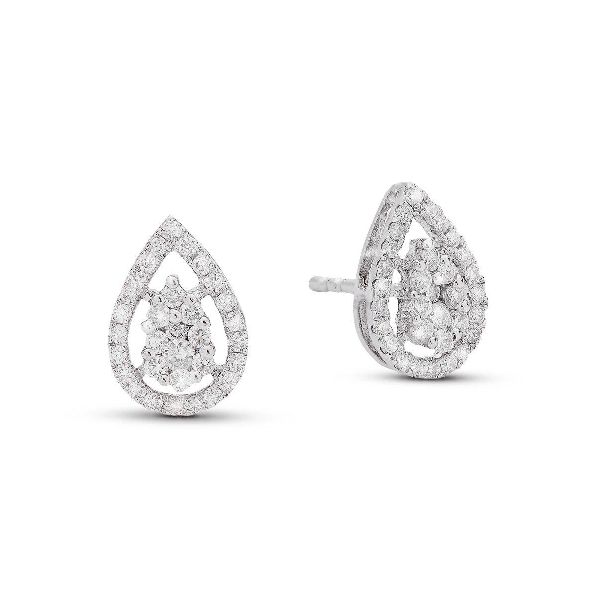 18K white gold stud earrings of diamond drop shape units in pressure setting