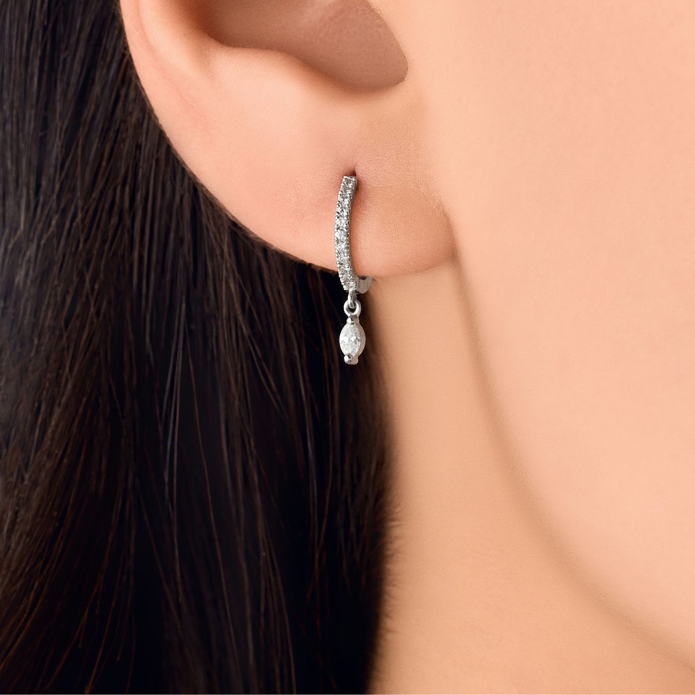 18K White gold diamond hoop piercing with dangling diamond in marquise cut (one piece)