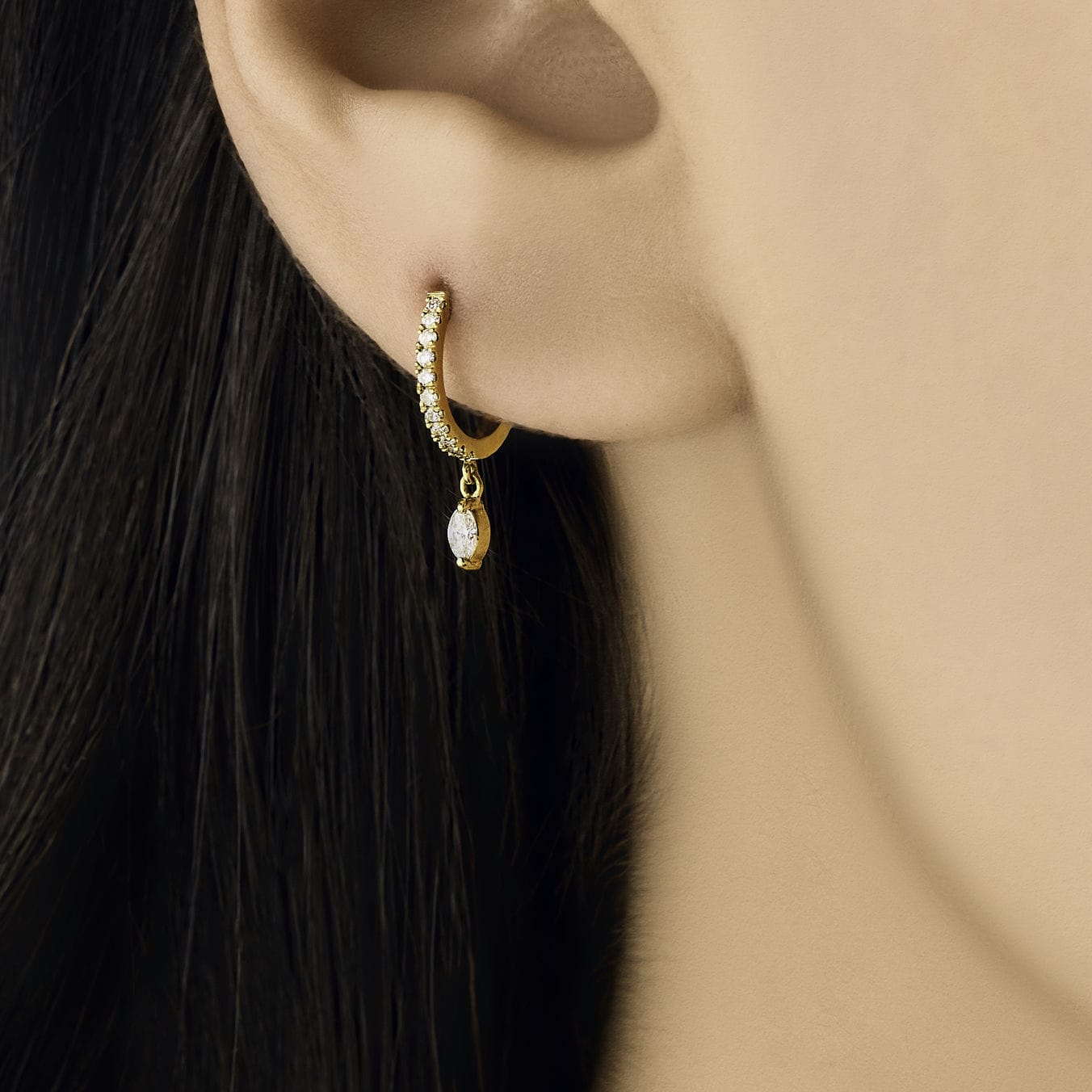 18K Yellow gold diamond hoop piercing with dangling diamond in marquise cut (one piece)