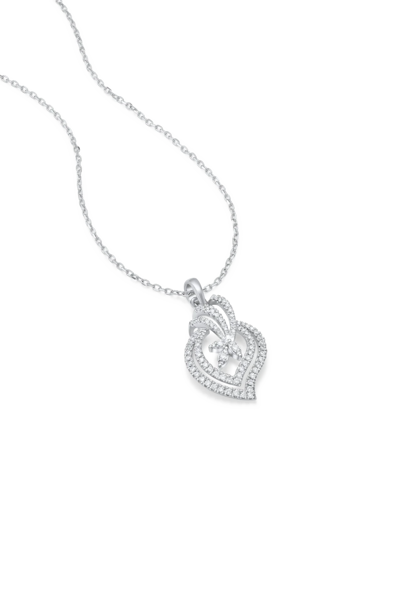 18K White gold necklace with diamond layers pendant and central marquise shaped diamonds (chain sold separately)