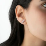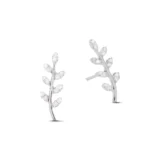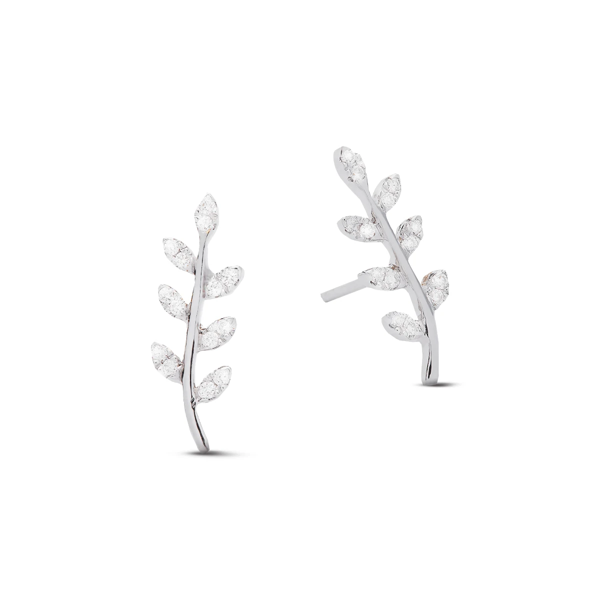 18K White gold earrings of diamond leaves in the form of leaves stem