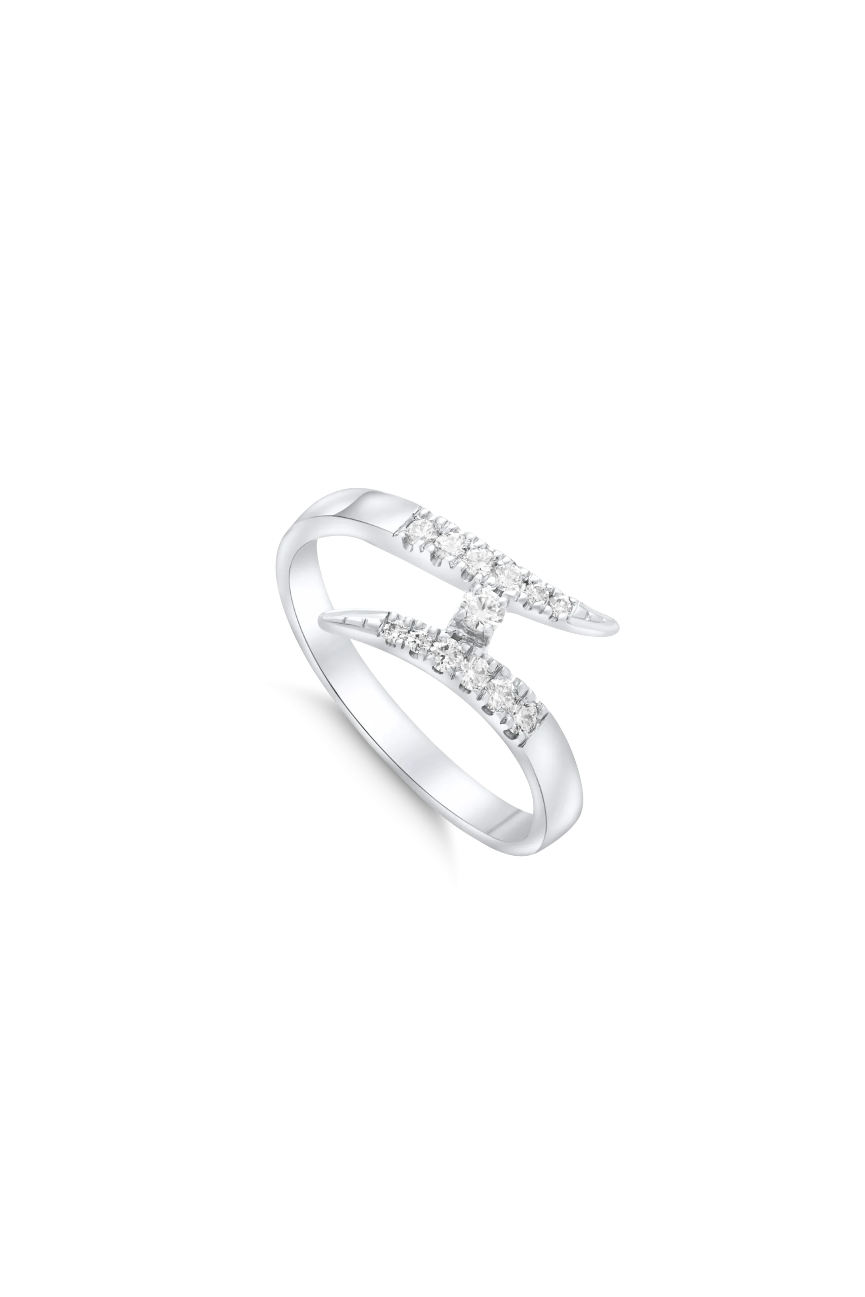 18K White gold ring with diamond overlapping sides and central round diamond