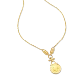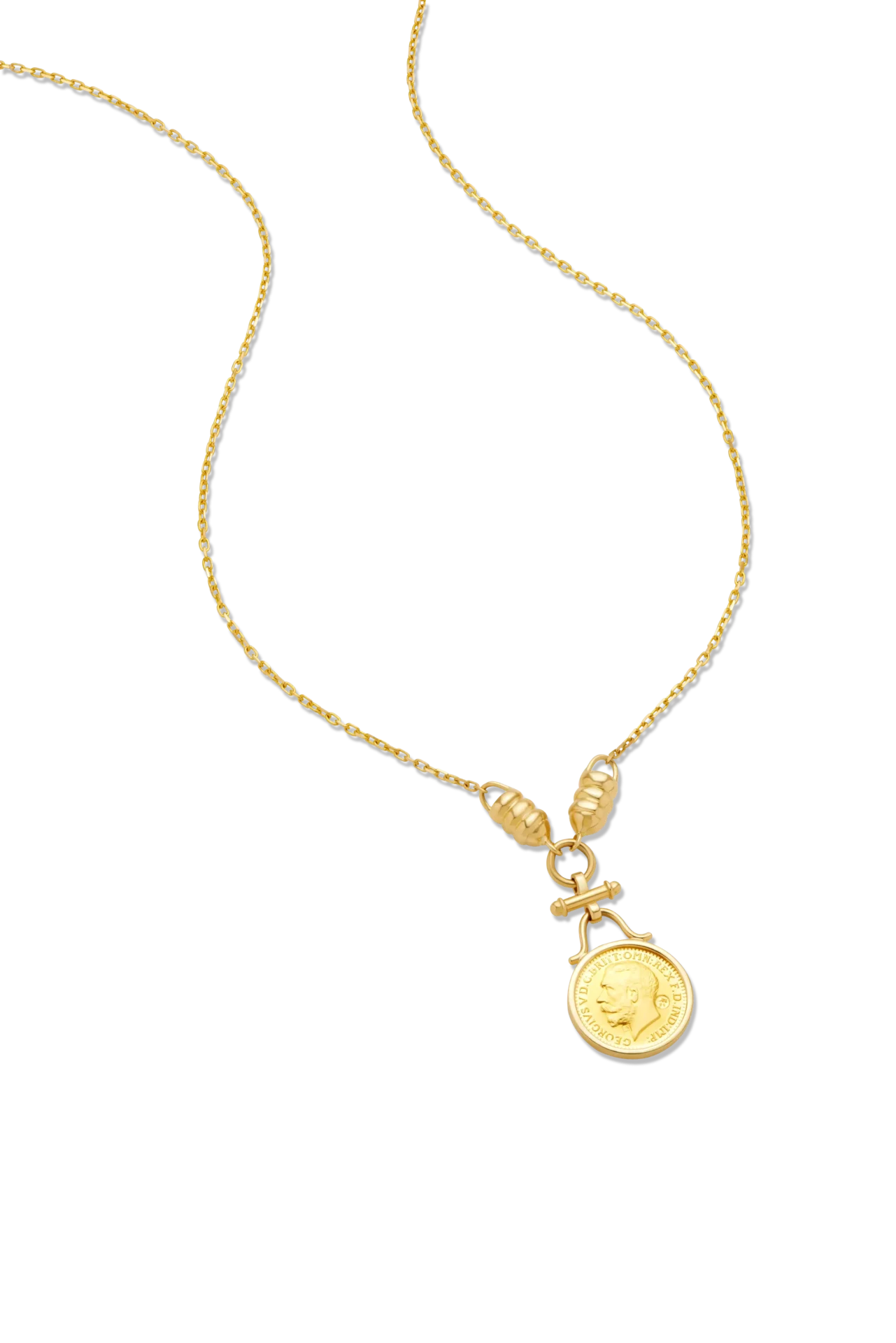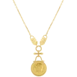 18K Yellow gold necklace with geometrical form pendant holding 21K half pound coin