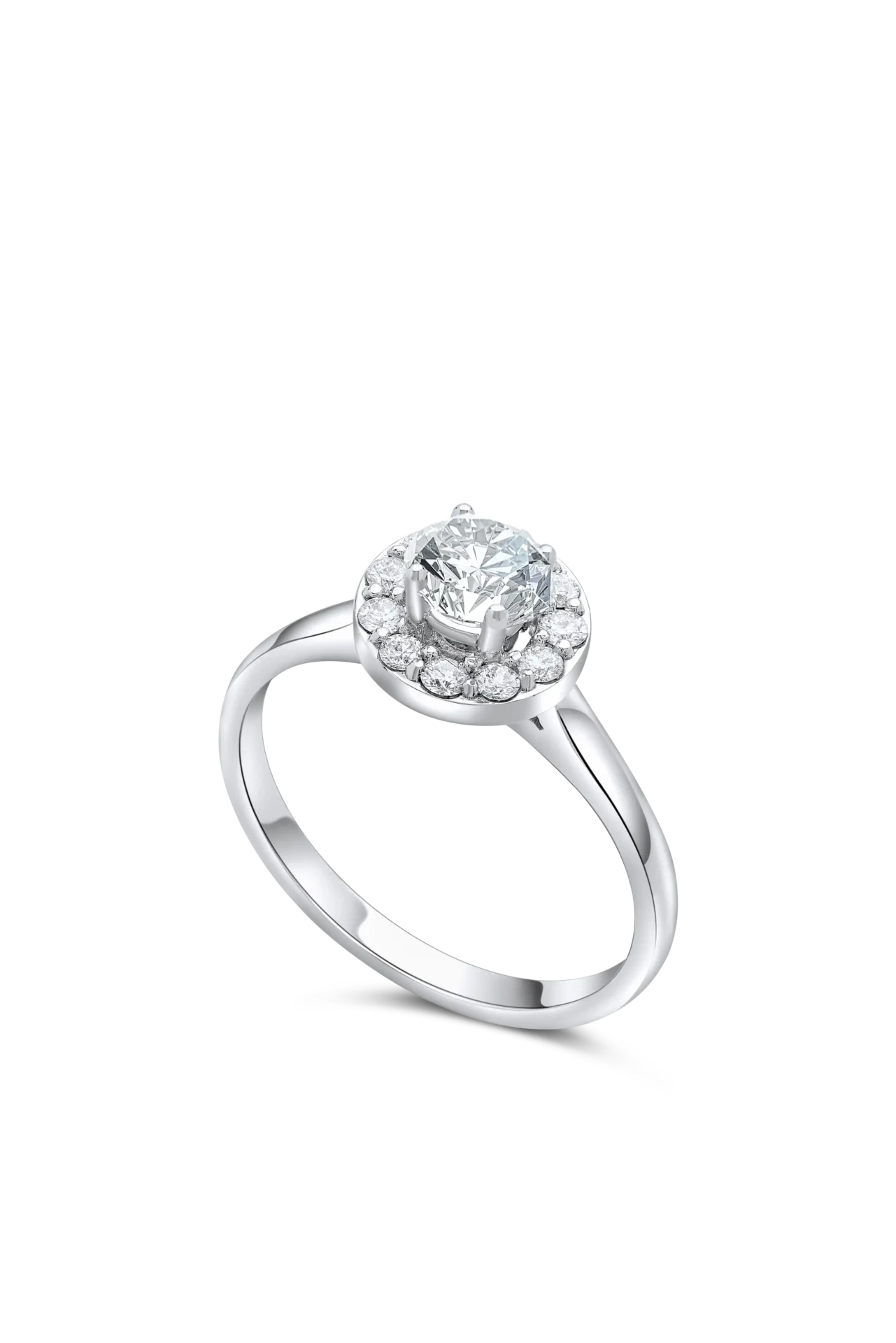 18K White gold diamond solitaire ring in halo setting style. The ring can hold a central stone of around 0.25 – 0.35 carat