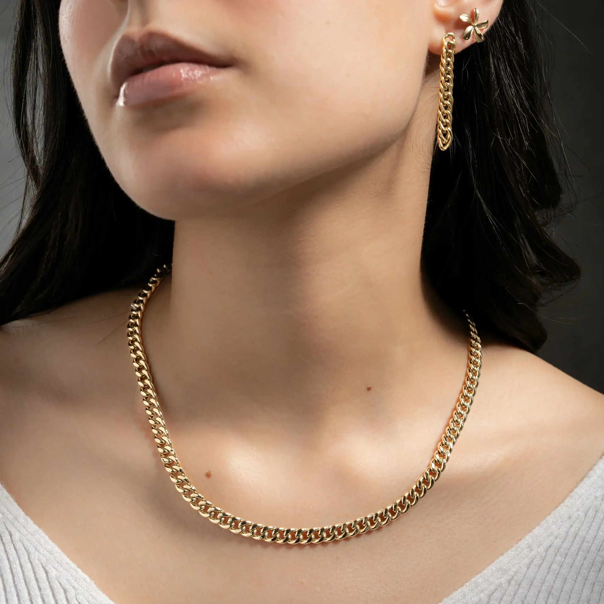 18K Italian Yellow gold curb chain necklace with circular spring clasp