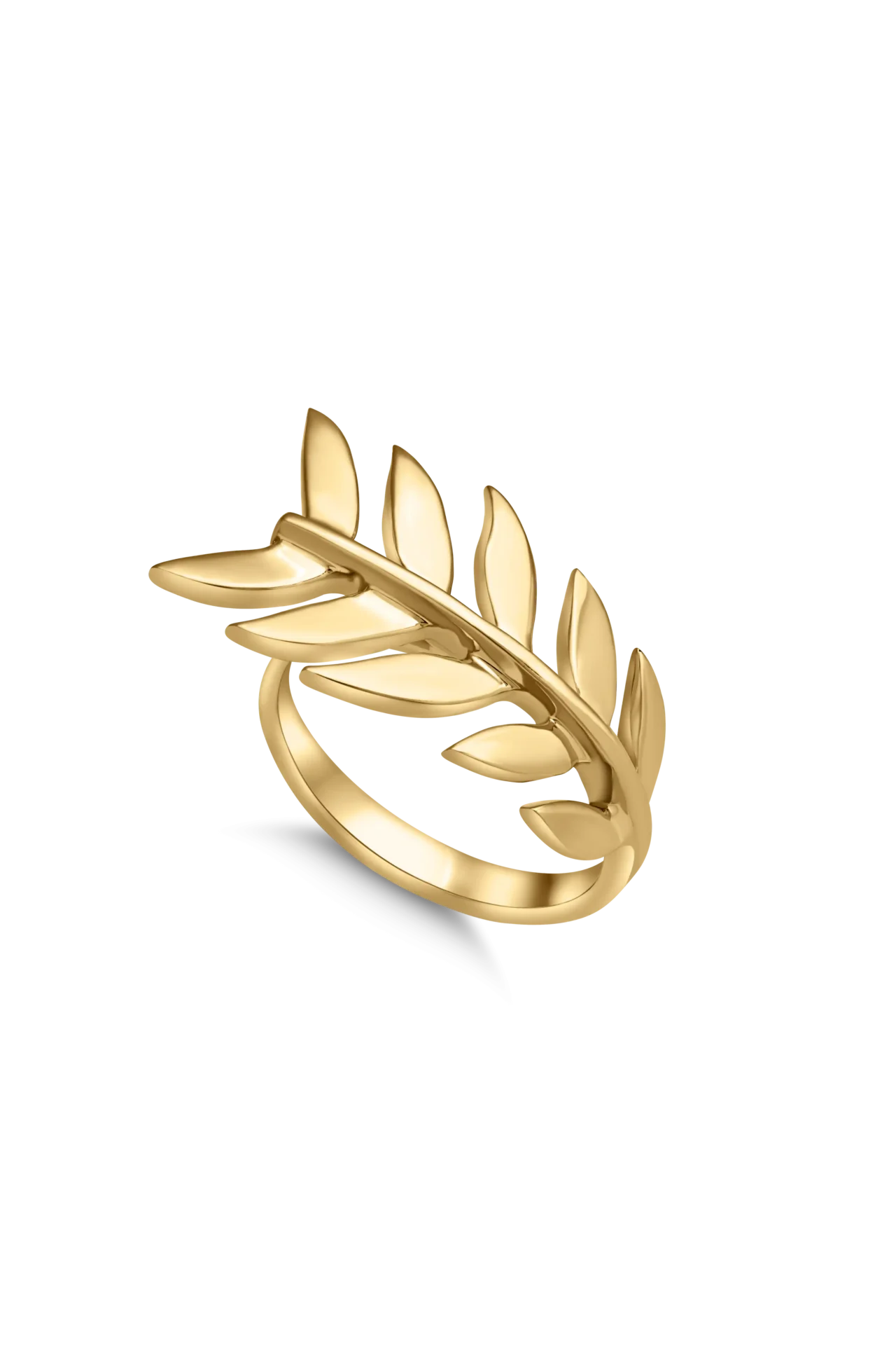 18K Yellow gold ring with leaves stem shape