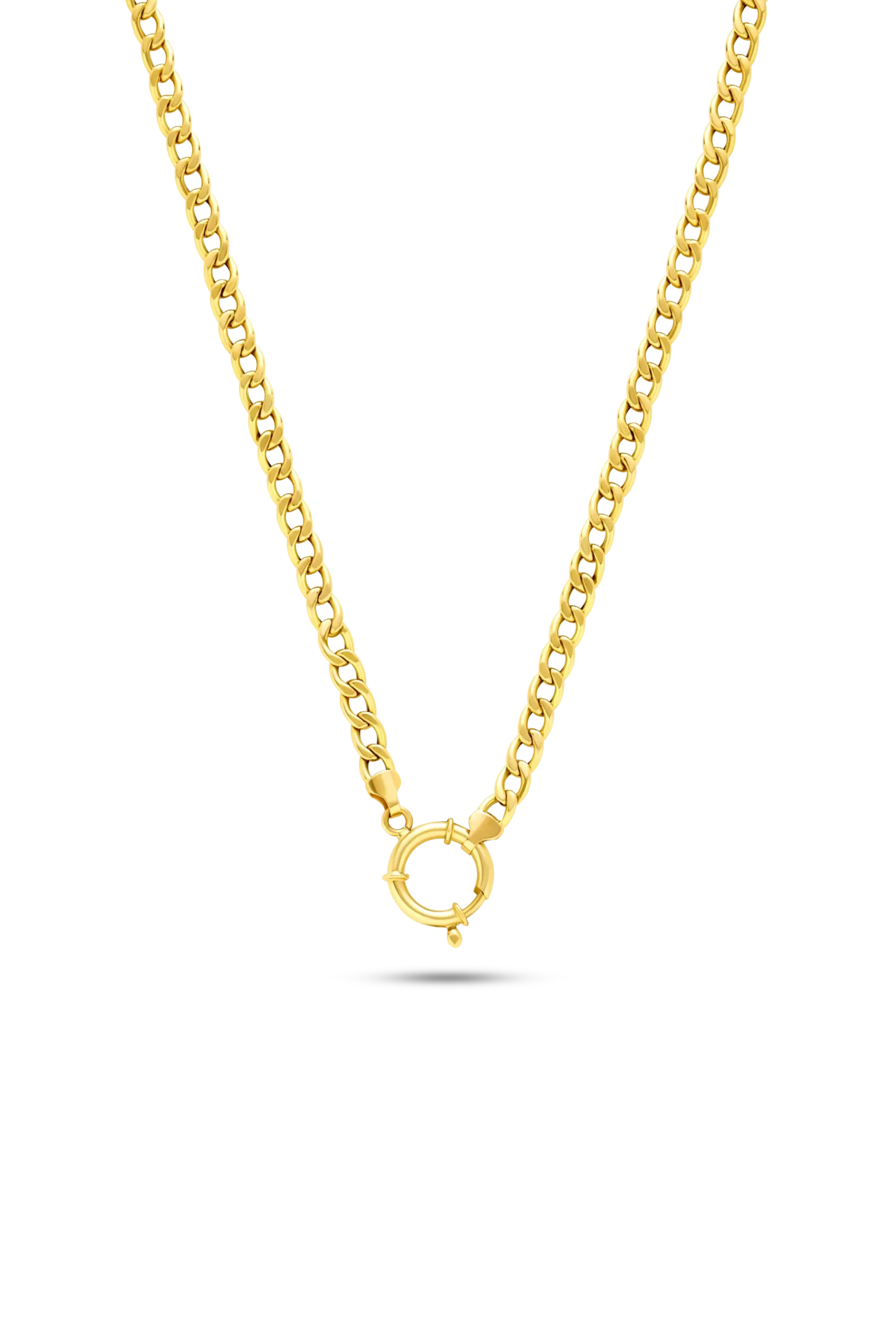18K Yellow gold curb chain style necklace in light weight and circular spring clasp
