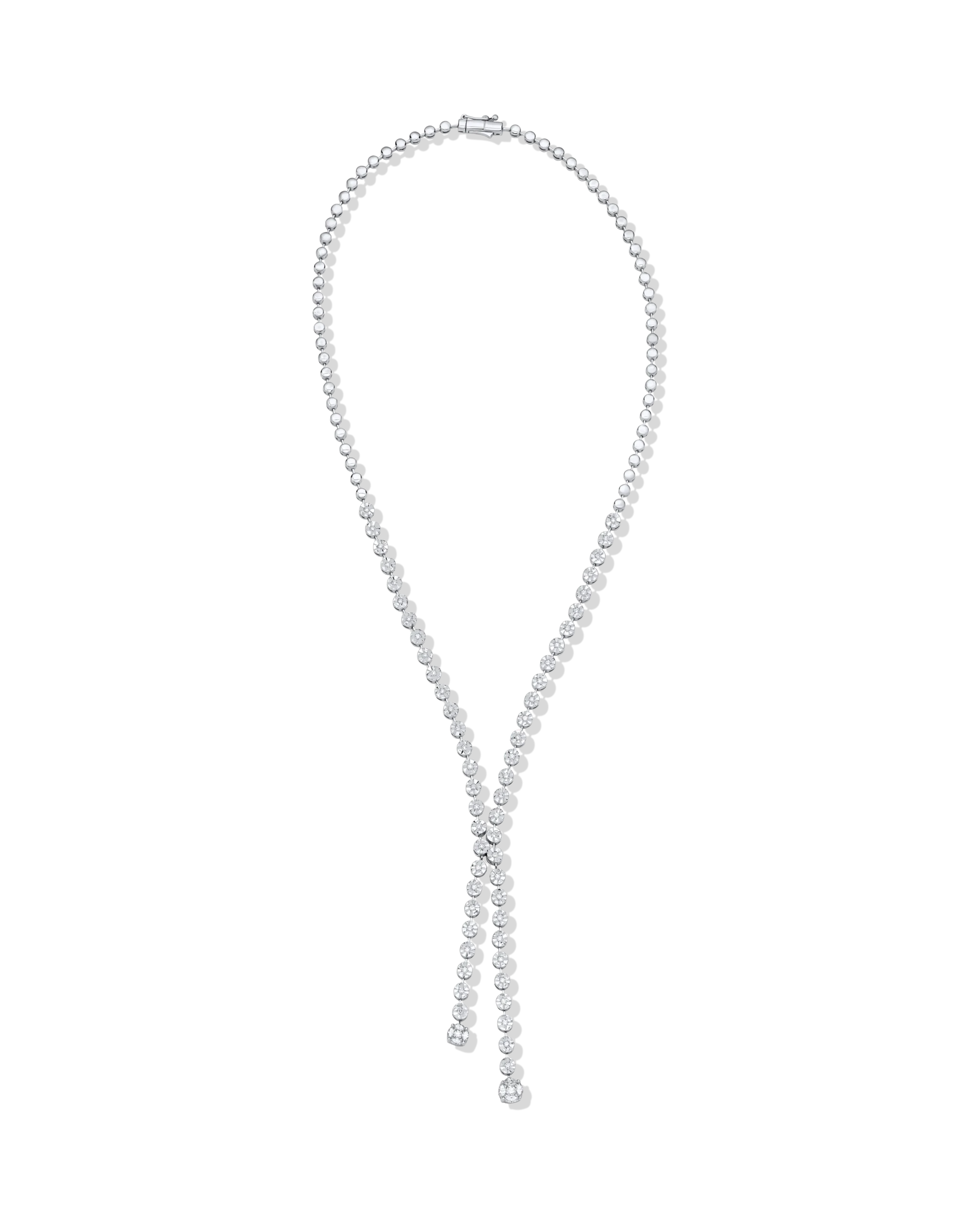 18K White gold tennis necklace with tie style in miracle laser setting