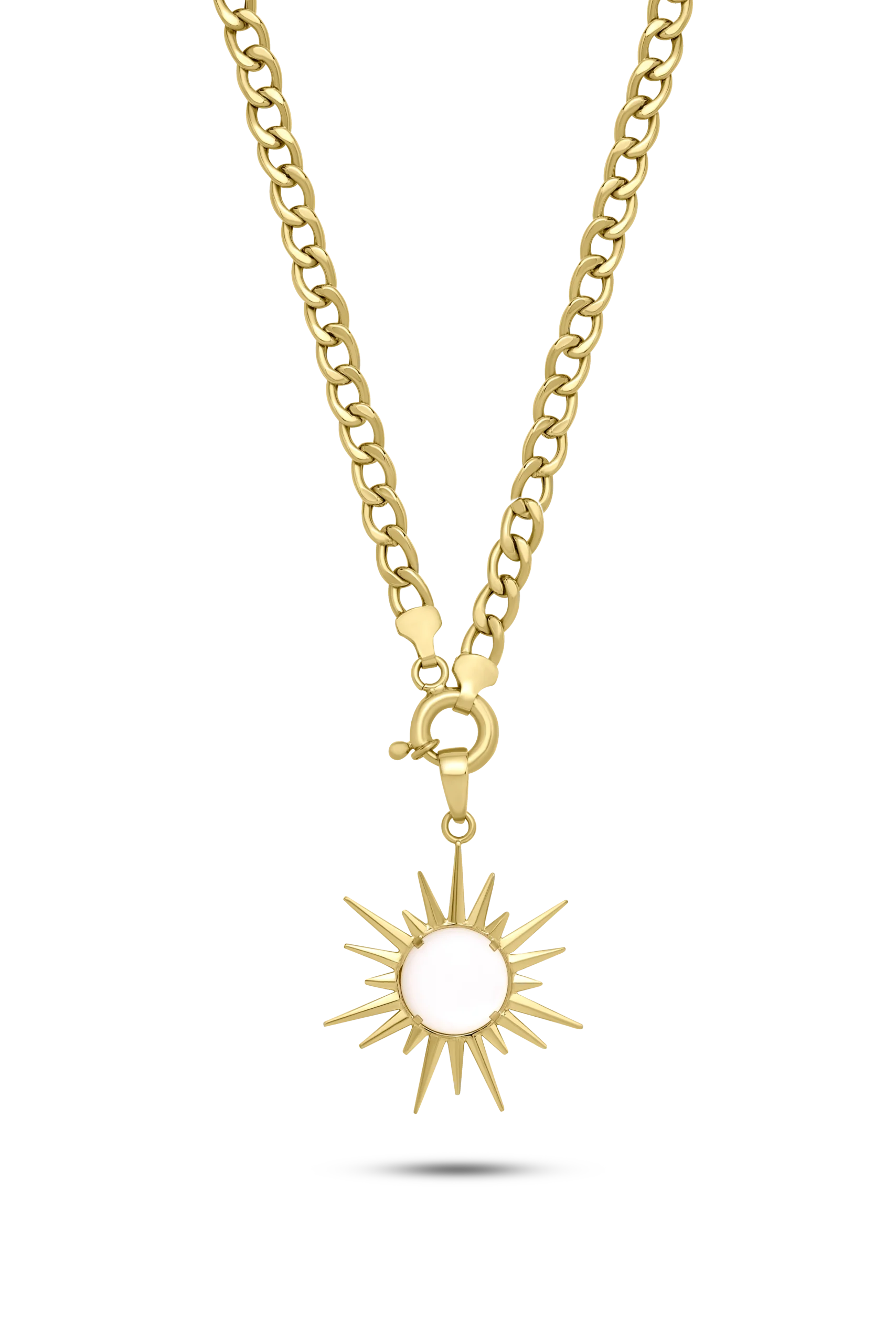 18K Yellow gold pendant with a central mother of pearl gemstone in a sun shaped form