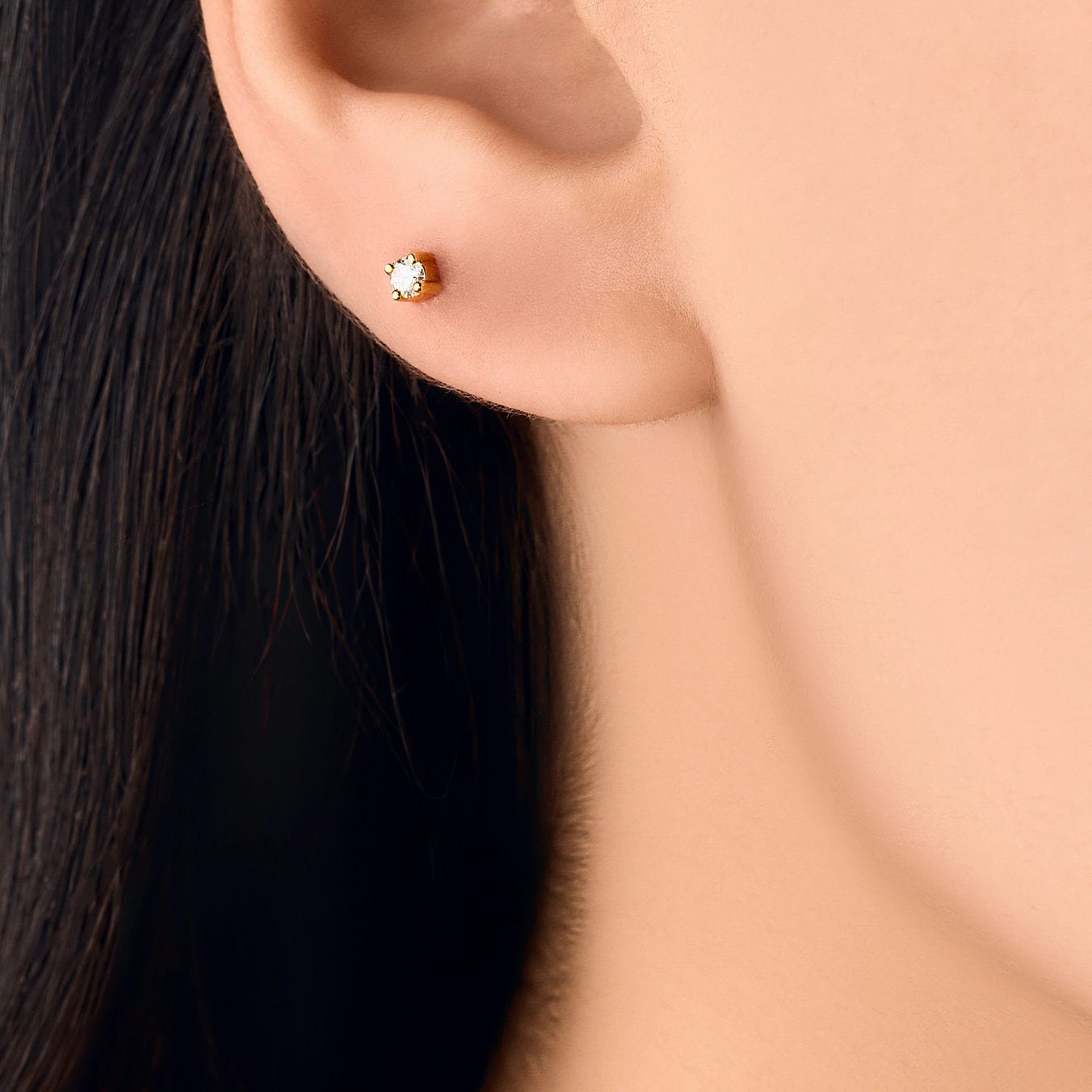18K Yellow gold flat back piercing of one diamond four prongs bezel (one piece)