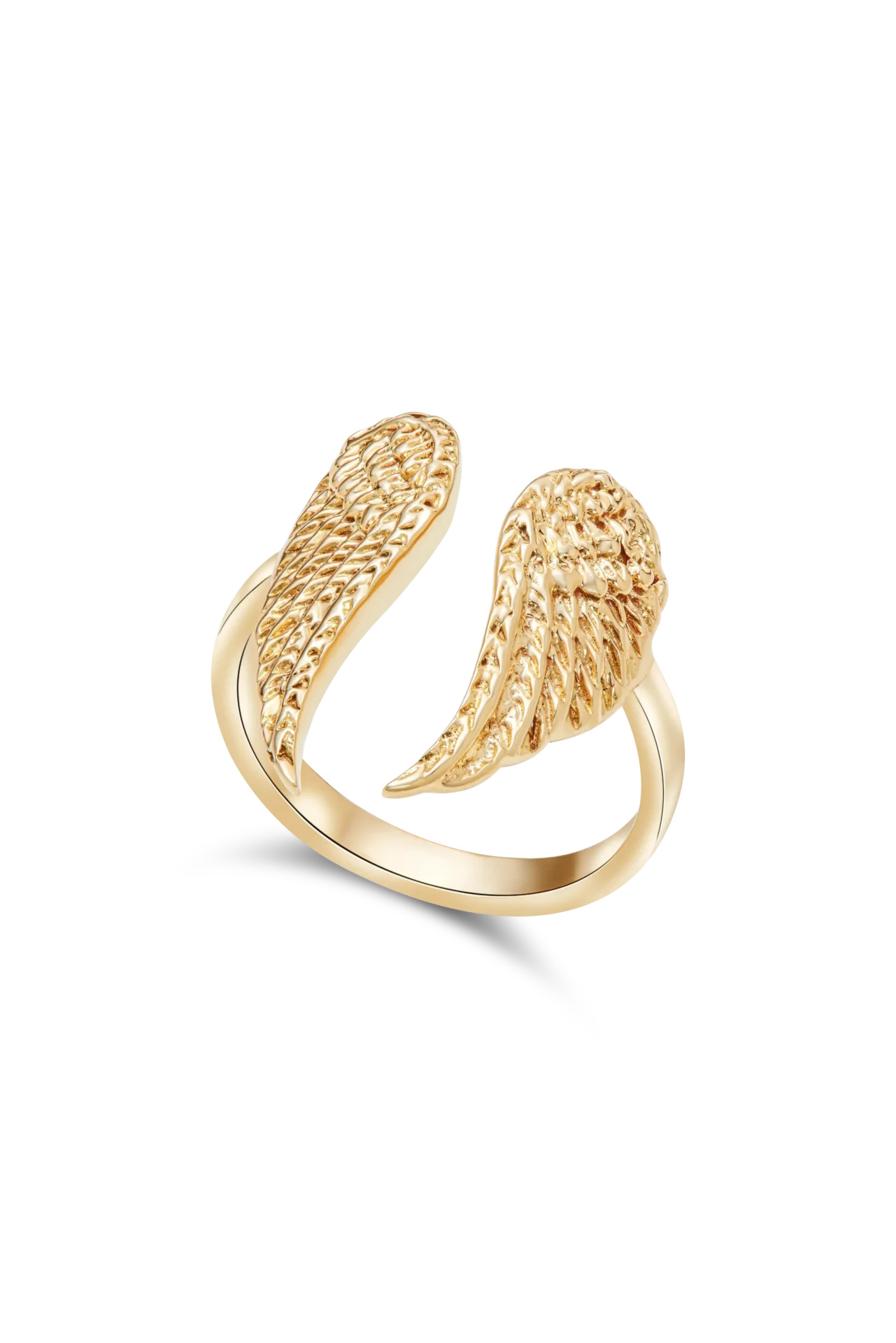 18K Yellow gold open ring with two facing wings in engraved texture