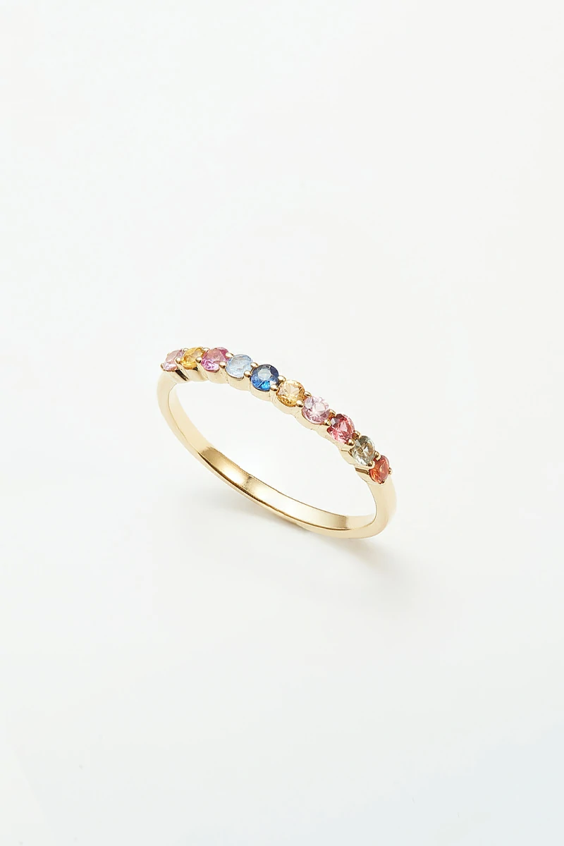 18K Yellow gold half eternity ring of rainbow sapphires gemstones