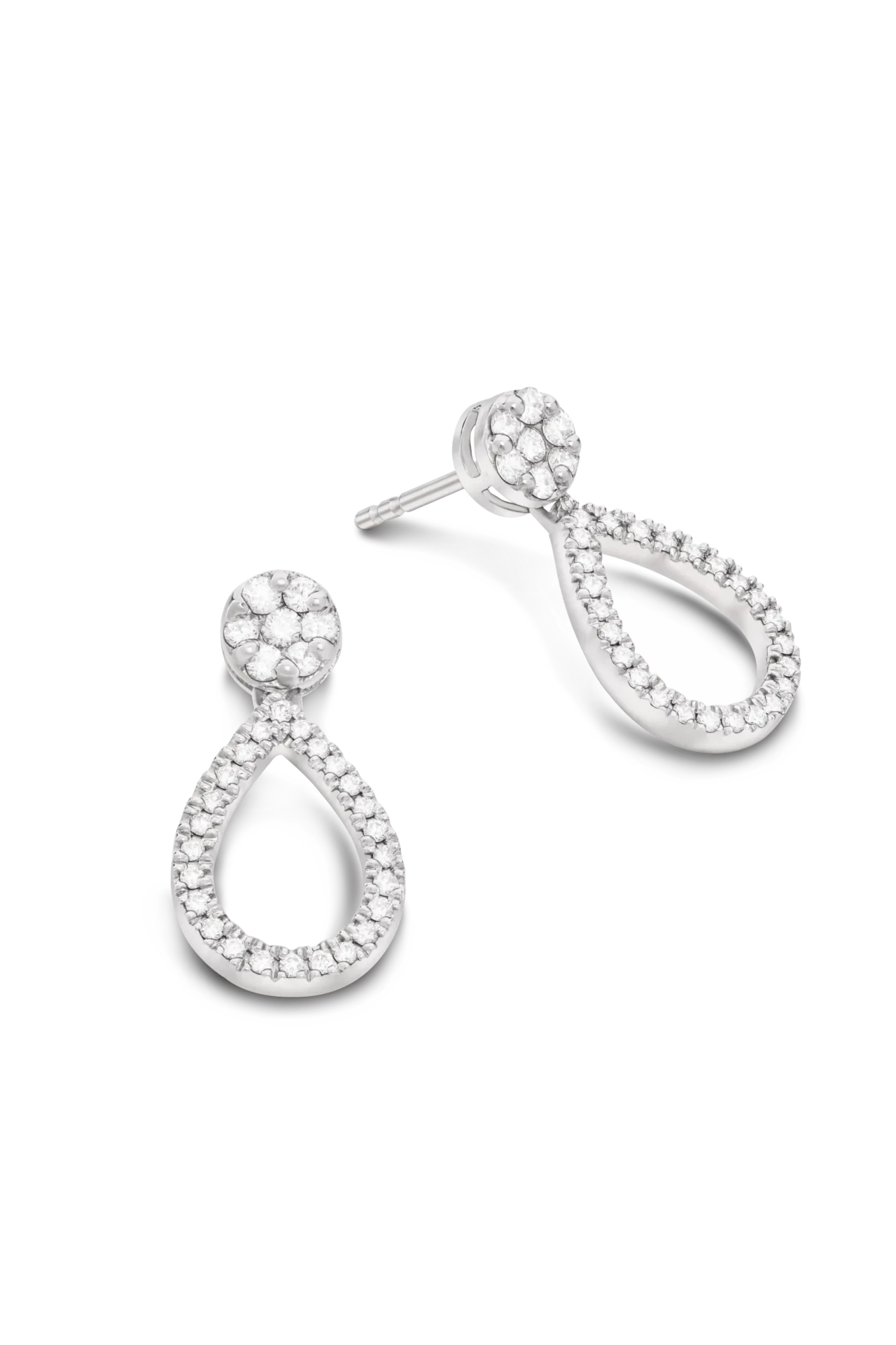 18K White gold diamond round earrings with a dangling diamond drop unit