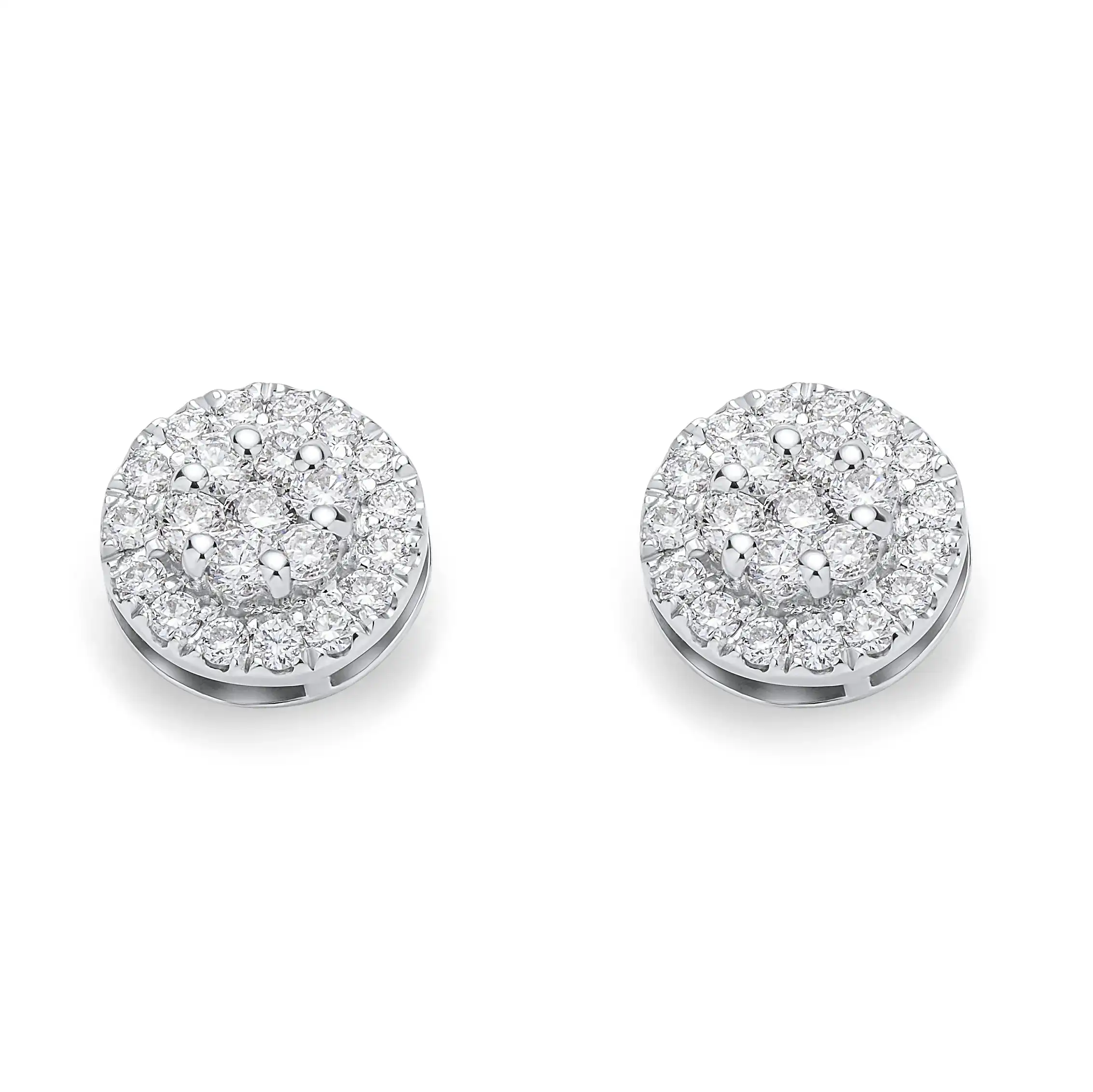 18K White gold diamond earrings in round shape with diamond pressure setting