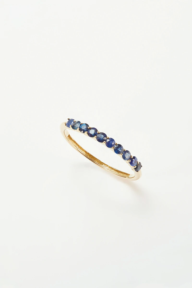 18K Yellow gold half eternity ring of blue sapphires gemstones
