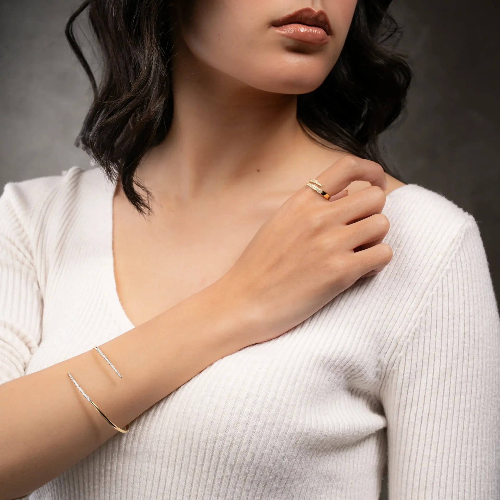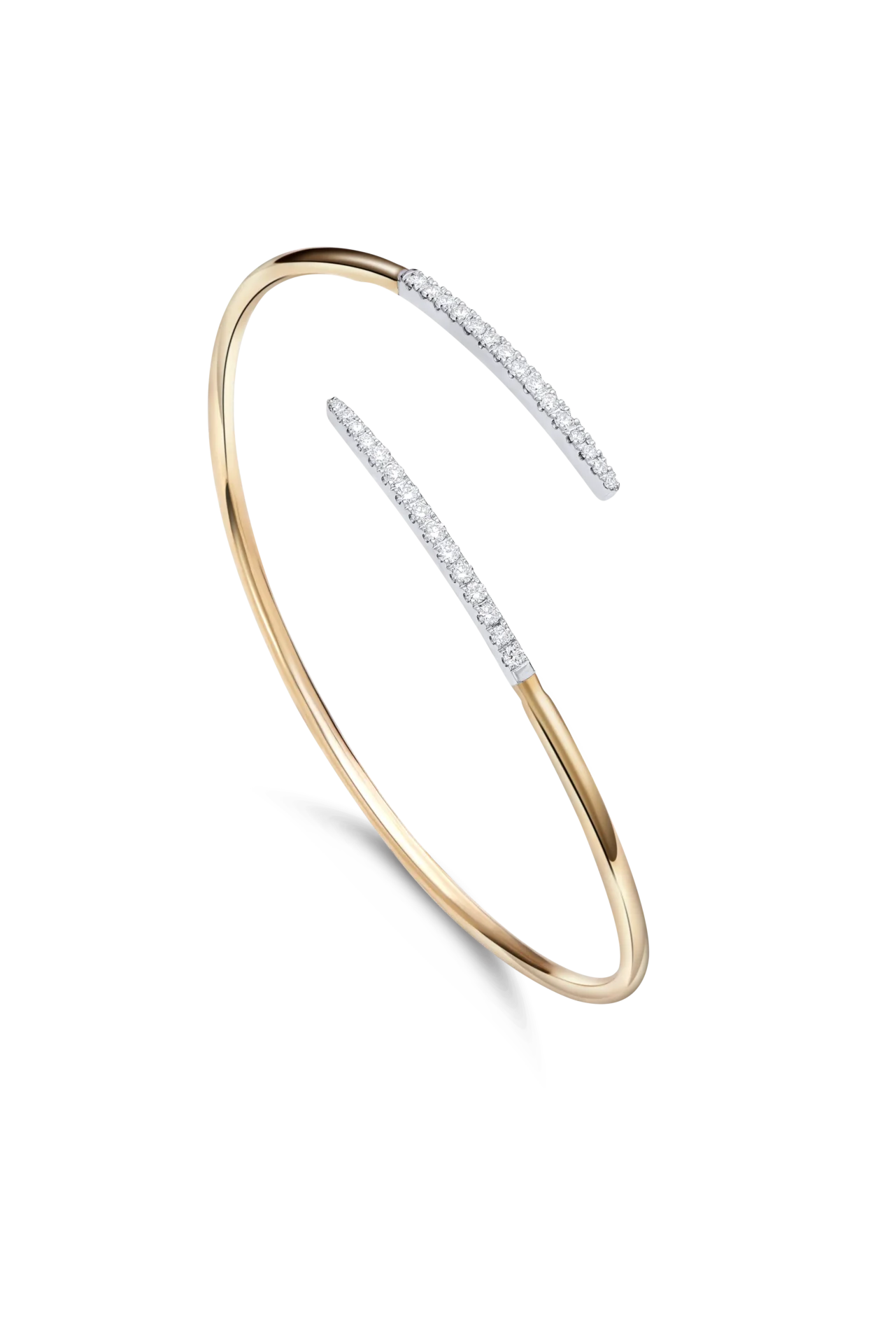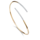 18K Yellow gold open bangle of white gold overlapping diamond bars