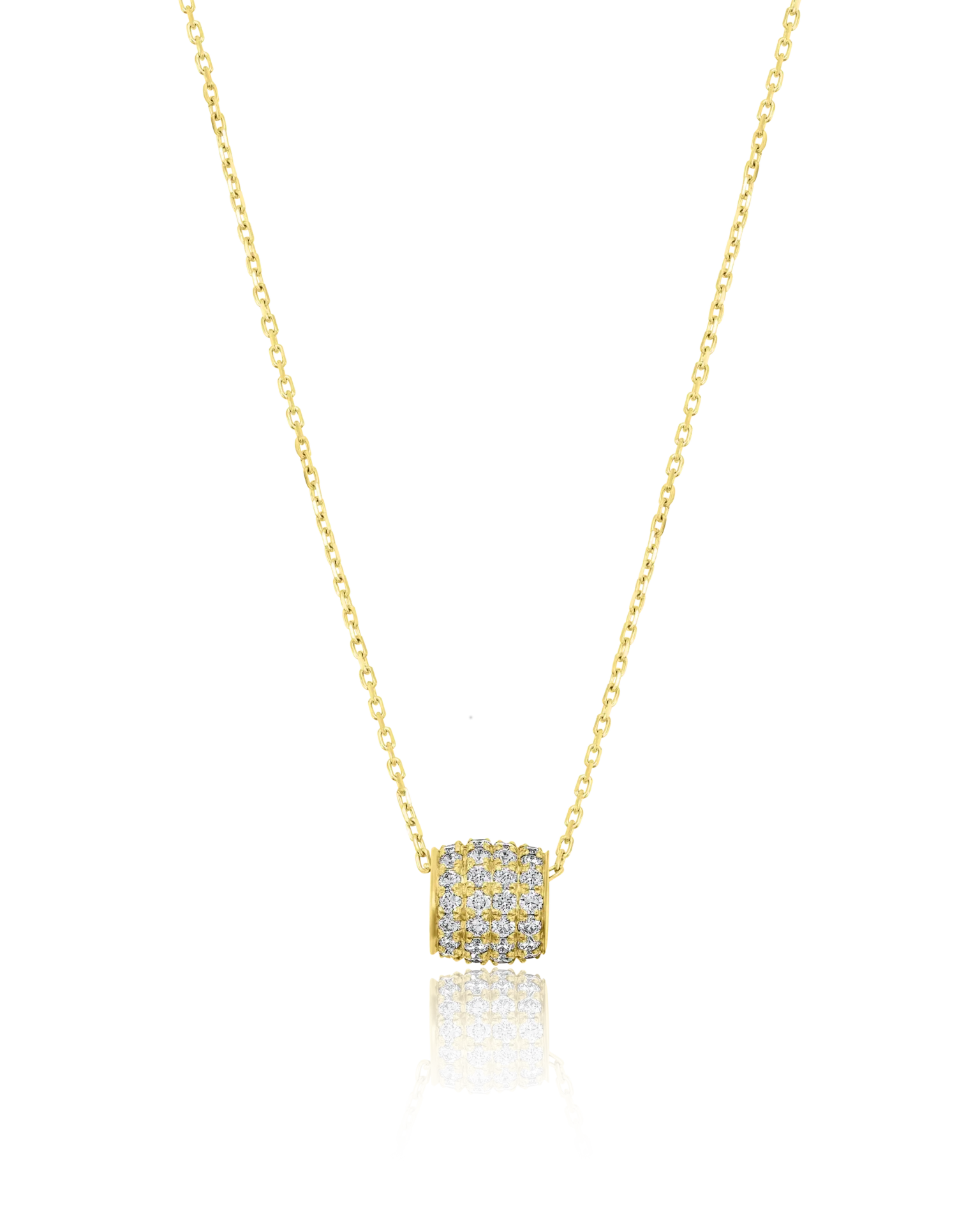 18K Yellow gold necklace with a full diamond cylindrical pendant