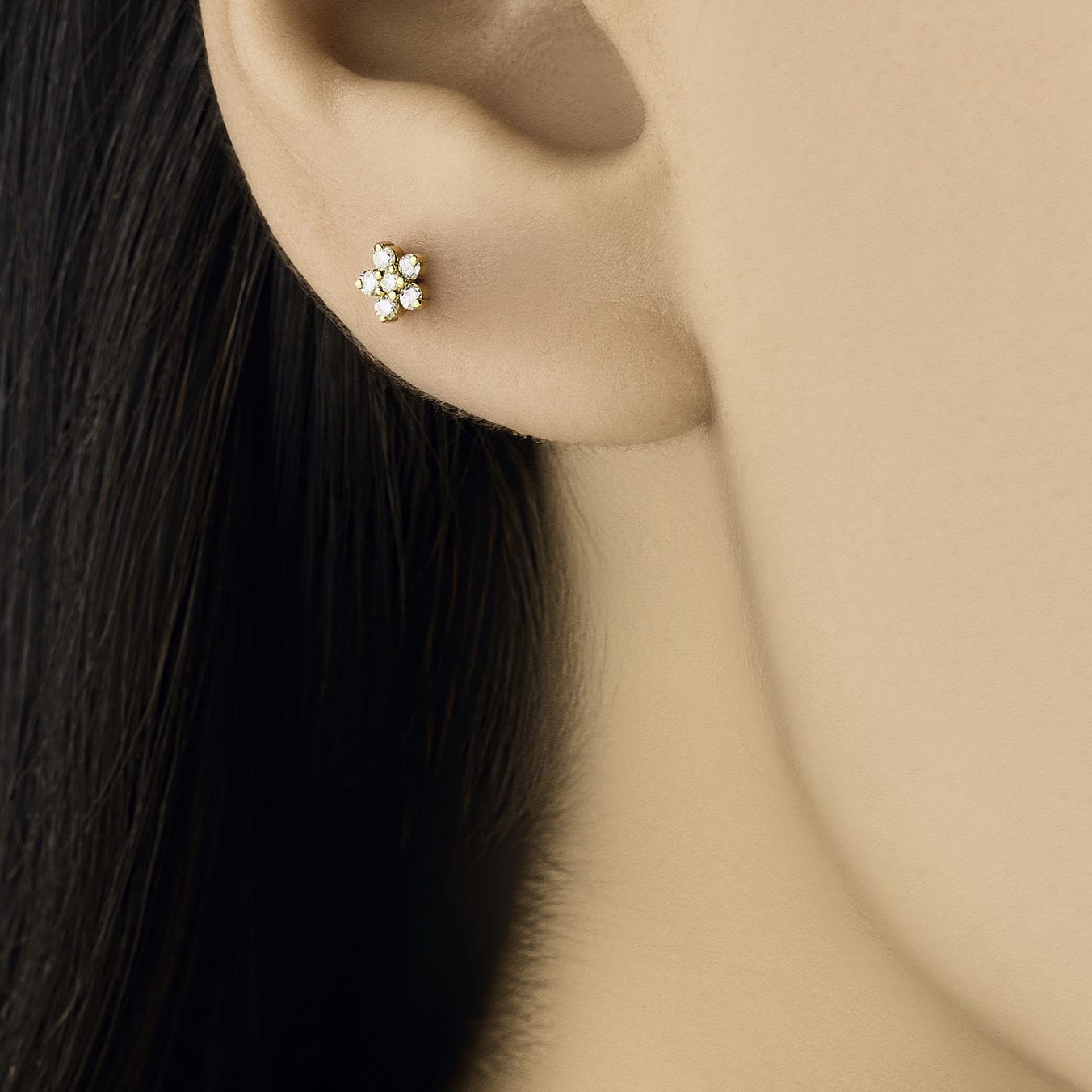 18K Yellow gold flat back piercing with diamond flower